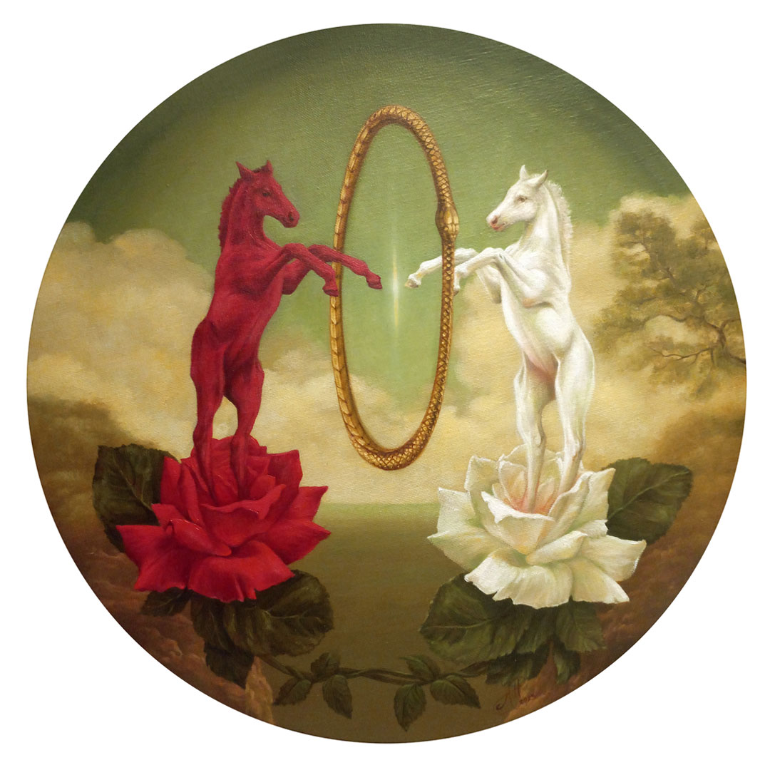 Nigredo Conjunctio Rubedo Two foals in rose-flowers, separated by the snake-ring of eternity Iridescent Stream Fontanel Load More Loading More…