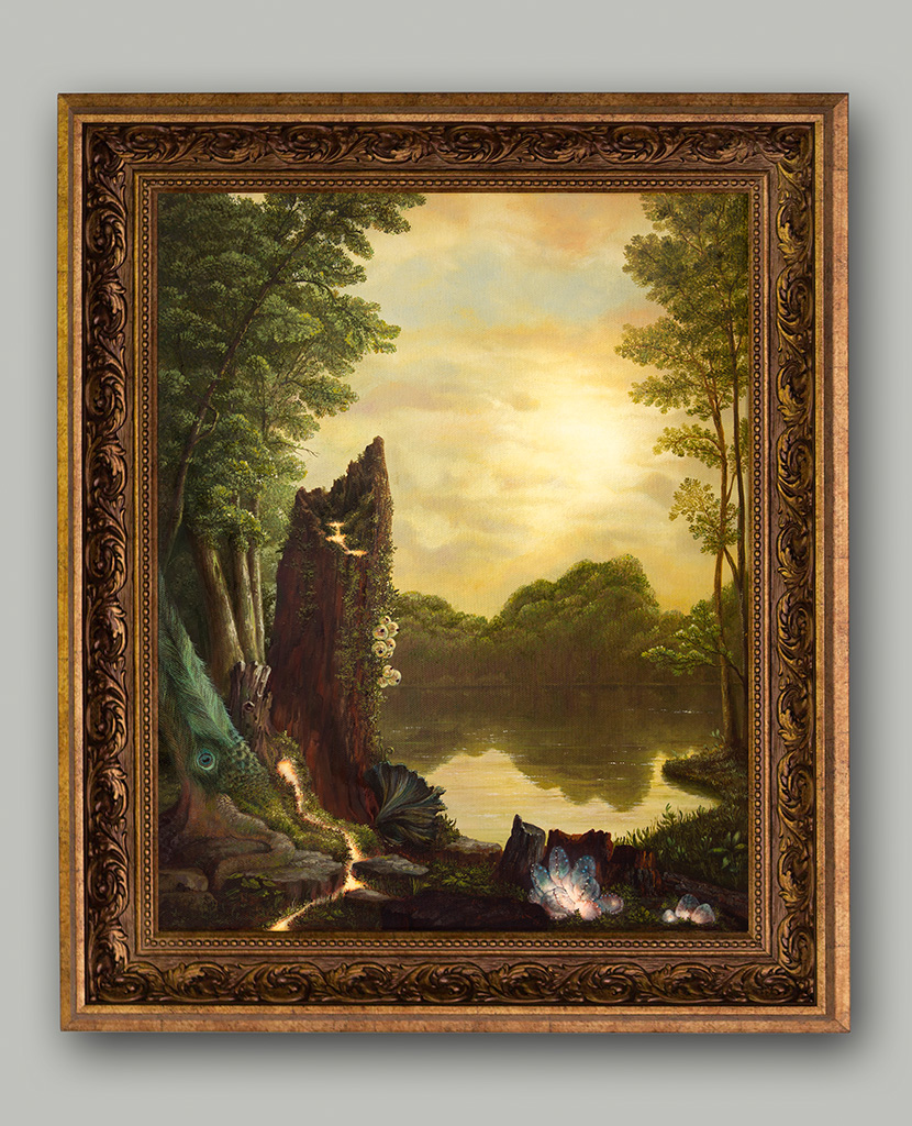 A.R. interactivity was made possible with the use of the Artivive app which is available for download for free on both Apple and Android. Simply open the app, point the smart device at the painting (or an image of the painting on screen) and allow a few seconds for recognition. Requires internet connection.
