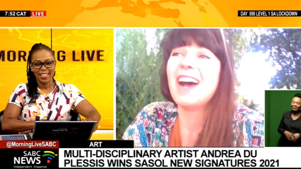- SABC News (12 Nov 2021): Multi-disciplinary artist Andrea du Plessis wins the Sasol New Signatures 2021